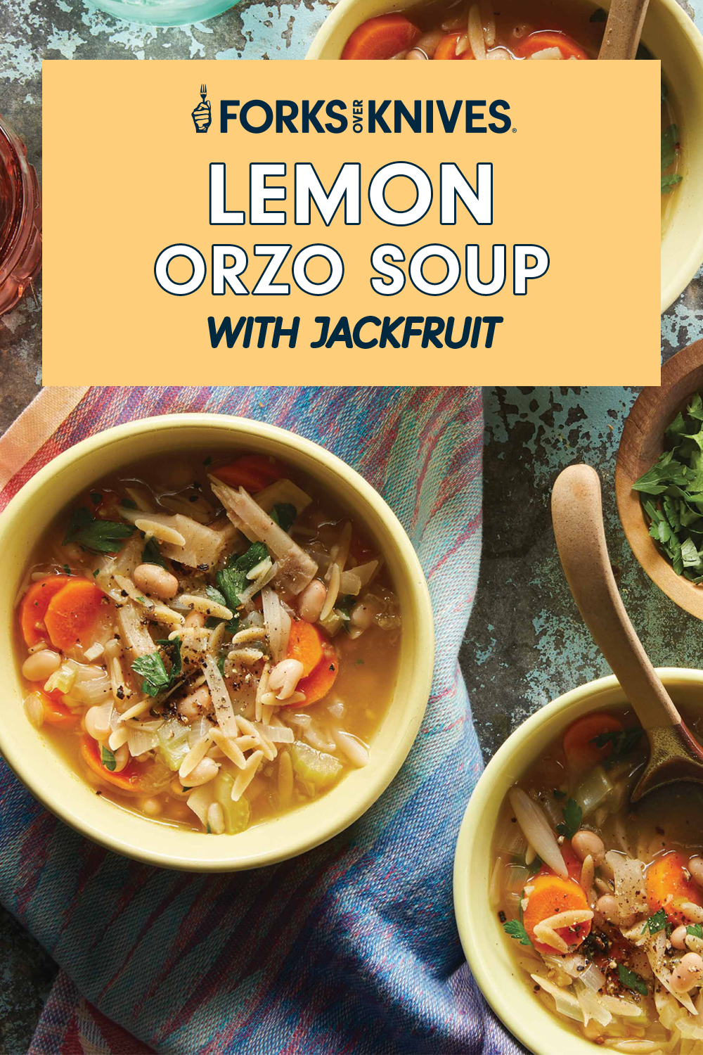 Zesty lemon is the star of this nourishing orzo soup, which features the bright citrus flavor in three different ways: Lemon juice and zest are stirred into the savory broth, and each serving is accompanied by a lemon wedge to squeeze on top. Lip-puckering lemon perfectly complements earthy carrots, creamy white beans, and hearty pasta so the meal is filling without tasting dense. Canned jackfruit comes in as a close second as the most important ingredient, because its meaty texture and absorbent properties add substance that will satisfy your rumbling stomach. Be sure to shred it before adding it to the soup so it gets extra tender. Top each bowl with a crack of black pepper, and enjoy!
